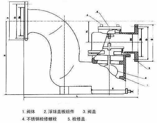 本阀结构简单,溢流顺畅无阻,具有双重水封作用,阻隔臭气及污水倒灌,性能可靠,效果良好,且污水倒灌时所带杂物不影响密封性能。