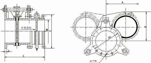 液动扇形眼镜阀又名液动扇形盲板阀, 主要由左阀体、右阀体、丝杆、闸板、密封圈、杠杆、液压油缸等零件组成,并由底座、支撑柱构成一个刚性结构体。阀门中设有夹紧、松开汽缸和翻板汽缸,夹紧、松开汽缸通过杠杆和丝杆螺旋驱动左、右阀体完成松开、夹紧动作,翻板汽缸驱动闸板完成开关动作。橡胶密封圈镶钳在闸板上,具有耐高温、密封性能好、更 换方便、使用寿命长等特点。液动盲板阀可以单台远距离控制,亦可多台联网远距离控制,非正常情况下还可以利用阀门本身装置手动操作。